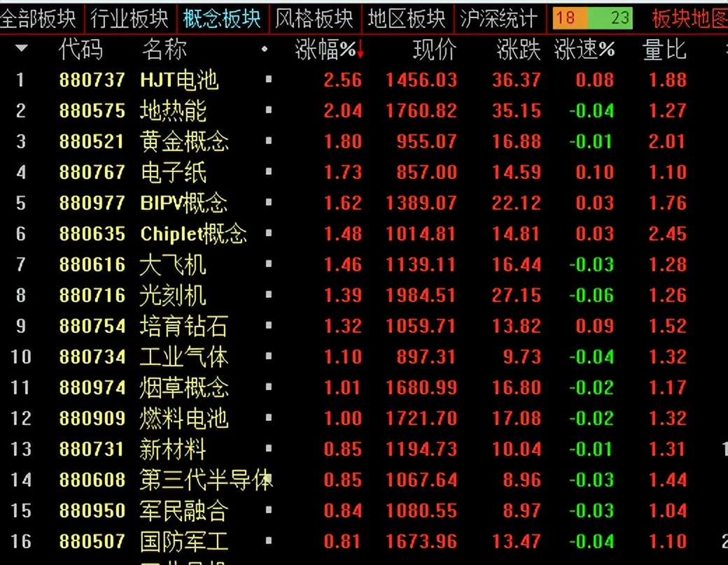 上午大盘低开后震荡回落,创业板指领跌。盘面上,赛道股中的细分方向表现强势,如光伏板块的TOPCON电池方向、芯片板块的Chiplet方向、汽车板块的整车方向,其中光伏板块内多股涨停。贵金属板块盘中大涨,赤峰黄金涨停。下跌方面,昨日大涨的煤炭板块陷入调整。总体上个股跌多涨少,两市超2500只个股下跌。板块方面,TOPCON电池、贵金属、Chiplet、汽车整车等板块涨幅居前,煤炭、机场航运、农业、中药等板块跌幅居前。