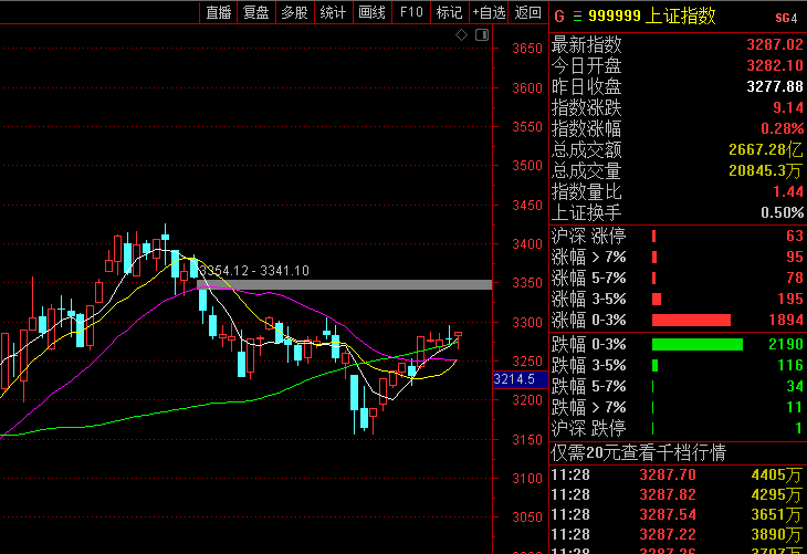 下午关注:大盘下方能否站在60日线3274点、五周均线3262点之上?上方能否收在3280点之上?上涨个股数能否超过下跌数?成交量能否超万亿?