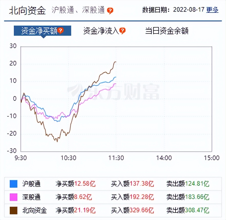 【北向资金净流入21亿元】截止午间收盘,北向资金净流入21.19亿元。
