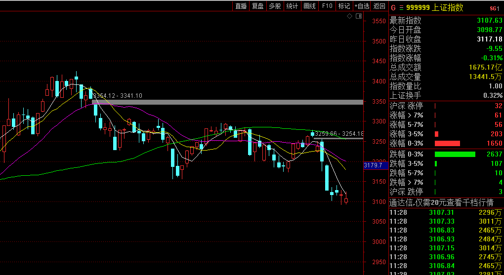 下午关注:大盘下方能否收在3100点之上?上方能否收在3130点之上?三大标杆股宁德时代、比亚迪、茅台能否有所表现?个股跌多涨少局面能否像昨天下午那样扭转为涨多跌少?成交量能否超过周二的6510亿,甚至周一的6653亿?
