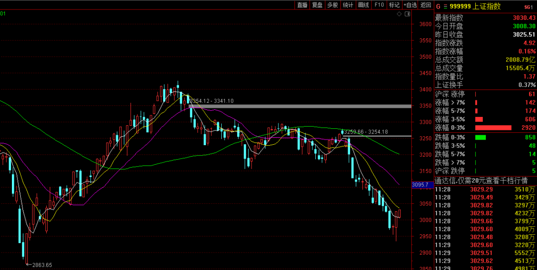 下午关注:大盘下方能否守住3000点?上方能否收在3030点之上?个股涨跌比和涨跌停比能否继续扩大?成交量能否比昨天的7100亿温和放大?