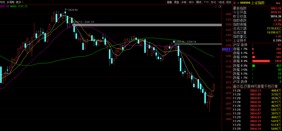 下午关注:大盘下方能否收在3030点之上?成交量能否超8000亿,比昨日增量10%?