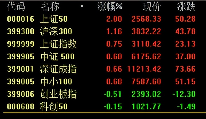 周末果然出台了对房地产金融支持16条措施。但是,除了金地、新城控股两股涨停外,其余房地产股都是冲高放量回落小涨。同时,保险、银行、券商等金融股也大涨,将大盘冲破3100点,收在3110点。上证50和沪深300涨2.00%和1.16%。上证指数、深成指涨0.75%和0.66%。中证500、中证1000涨0.60%和0.10%。但创业板和科创板跌0.51%和0.15%。