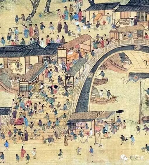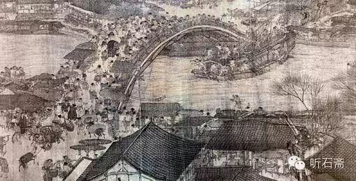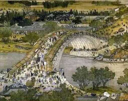比如,作为全图重点所在、为画家“极力描绘”的“虹桥”,据宋人记载,应是“其桥无柱,皆以巨木虚架,饰以丹駎,宛如飞虹”(宋.孟元老《东京梦华录》)的木结构建筑,但明清几乎所有仿冒本所绘都是清清楚楚、如假包换的砖石桥。那是它们一个极大的“死穴”。而北京故宫藏本却不同,它描绘的恰恰就是那样一座巨梁飞架、结构特异、完全符合《东京梦华录》所述样貌的木拱桥。两相比照,孰真孰伪,已不难得出结论。