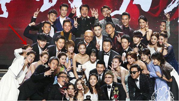 压轴的肯定是最后出现了,要说明星大合照最重要的就是一定要露脸啊,不露脸的话辛苦跑上来照张相图的啥呢?但是王祖蓝的老婆李亚男就是最倒霉的一位了