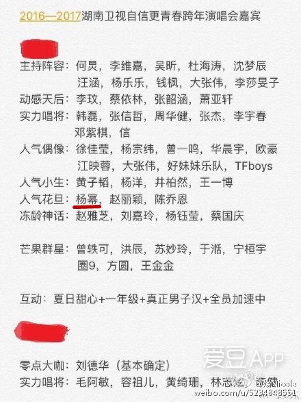 而另一方面芒果台又传来一个消息就是今年的重头戏跨年晚会马上就要来临了,从网上曝光的邀请名单来看,杨幂基本上是已经确定无疑的人选了。