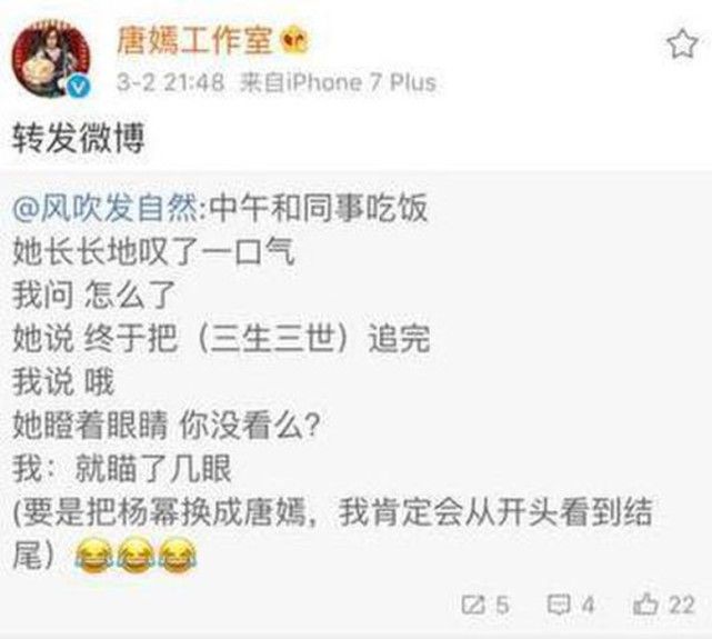 三生三世正是收官之际,而杨幂还沉浸在白浅所带来的的赞誉声中,一记耳光公然打响,而伸出来的这只手竟还是来自顶着圈内好闺蜜人设的唐嫣的工作室。唐嫣工作室如此嚣张地转发踩杨幂的微博,难道闺蜜情真的已破?