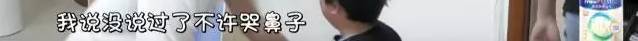 噗噗马上开始哭着求饶“我不哭了”,“我不哭了”。可是他根本没有办法制住自己的眼泪,尽力憋住的眼泪,让他一直剧烈地抽噎着。