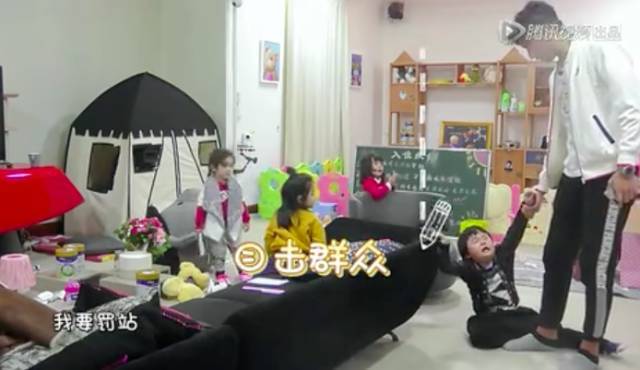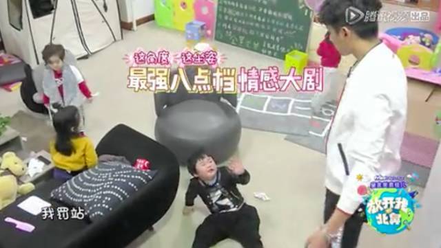 于小彤很生气地拉过噗噗,告诉他“别吃了,走,去罚站去,说没说过不许哭鼻子!没有椅子可以说,但是不能哭!”