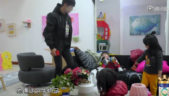 有其他小朋友告诉易烊千玺,是苹果弄洒了牛奶,沙发湿了。