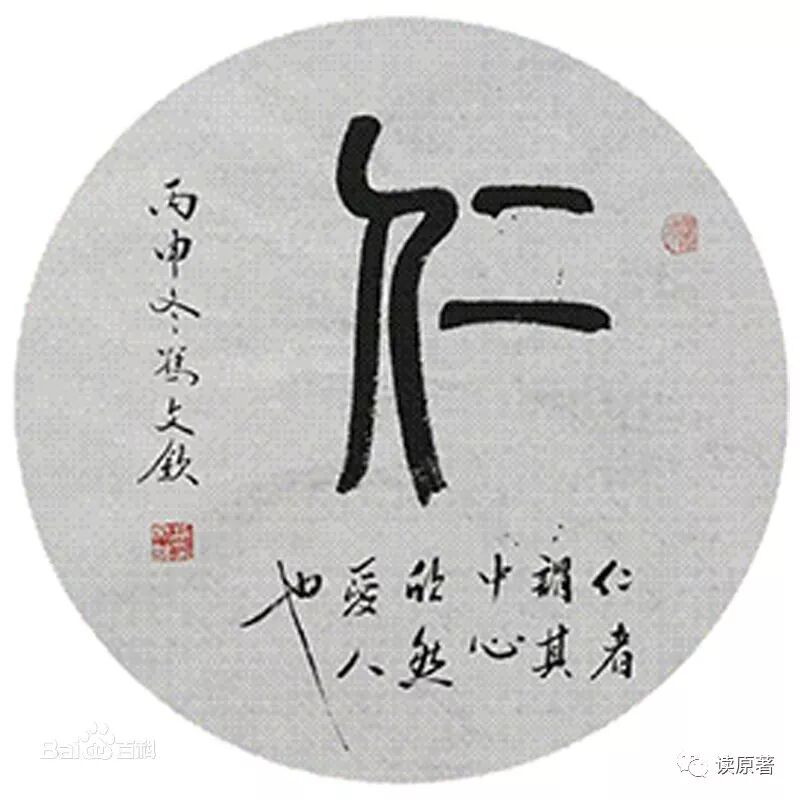 仁,从人,从二。从人说明“仁”本即是人的特质,是人身上一种与生俱来的特质。从二,则有好几种引申,一是孟子说的“善推而已矣”,闻一以知二,老子也说,道生一,一生二,二生三,三生万物,由成全自己独自一人,推广到成全父母,再推广到“成万万人之美,己欲立而立万万人”,老吾老以及人之老,幼吾幼以及人之幼,这是仁的终极体现。“二”的引申还有一个方向,《易·繫辞下》中有“因贰以济民行,以明失得之报”,“二”在此处又可以指天地之义,一个真正的仁人,应该是去私心,存道心的,与天地一样,自强不息,厚德载物,海纳百川,普照无别。