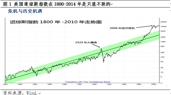1929-2014年,美国GDP年均增速6.2%,股市年均涨幅5.1%(1802-1870年股市年收益率7.0%;1871-1925年股市年收益率6.6%)。