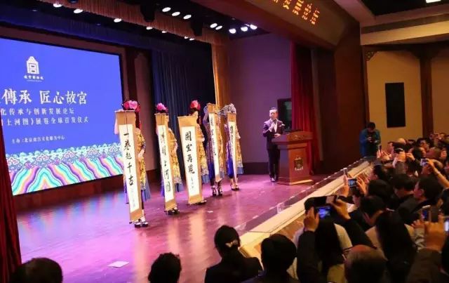 活动伊始,原故宫博物院副院长陈丽华女士发表了主旨演讲。她在演讲中指出,经过多年的努力,故宫博物院攻克了修复和保护文物的众多技术难关。在保护好文化的同时,也应该通过文创的方式将博物院中180多万件的馆藏衍变成文化产品,让更多的民众可以近距离观赏到这些国宝的真容,感悟其中的文化内涵,从而达到“把故宫文化带回家”的目的,再现《清明上河图》仅仅是一个开始。