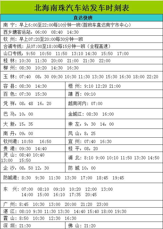 广州-北海 | CZ3353 | 1234567 | 21:40 | 22:45 | A320 |