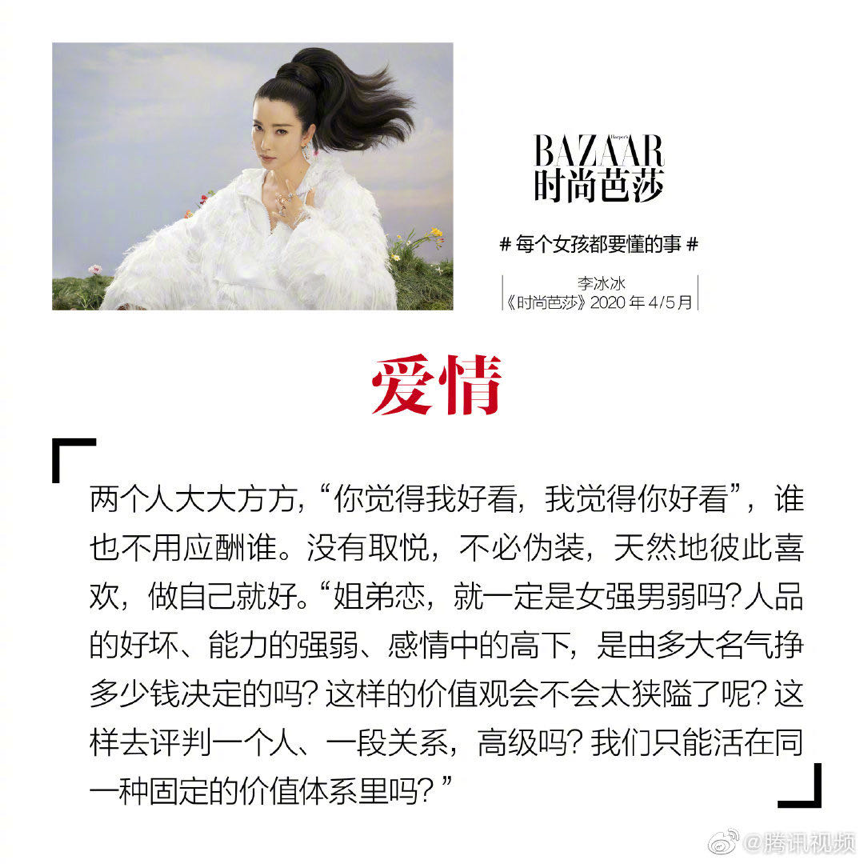 期待李冰冰继续输出自己的生活和感情态度,谁不想遇见爱情时都活的温柔大方呢!
