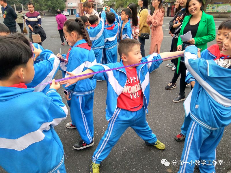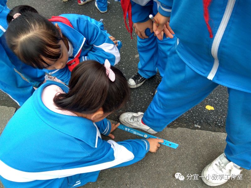 课后,数学工作室的老师们也对我的这堂实践活动课进行了点评,如:在让孩子们进行测量之前,要先说明测量方法。测量标准的图纸,要讲一个翻一个。小组长在图纸上记录测量大约数据时,字太小,户外没有投影仪,看不清,应该用粗记号笔来写,效果会好一些。小组长在分工的时候,要先分工好,谁做什么,以免都是小组长在忙碌。小组长在汇报之前可以先让其他同学猜猜他是用什么方法测的。取平均值的时候可以先让孩子们产生争议,再来告诉他们应该怎样取平均值。任务单二上要写清楚是估计结果,让孩子们更明白是什么意思。动物可以换成小动物,或者日常中可以看得见的动物,以便更好估计。