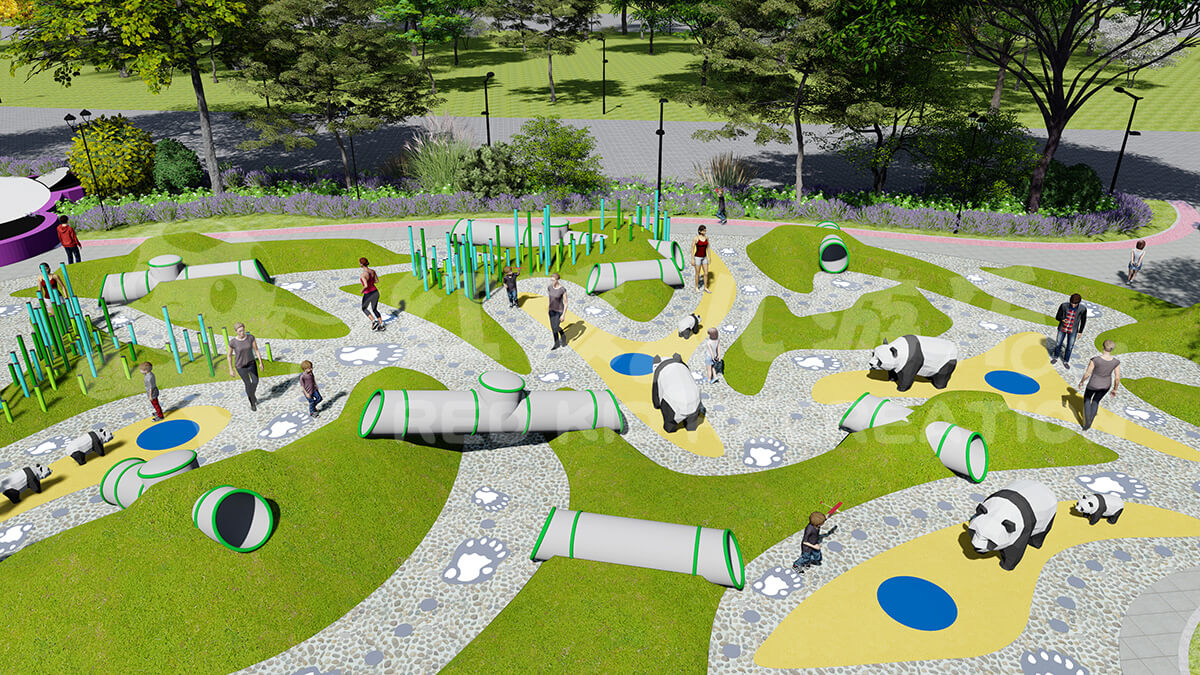 众所周知,雅安是大熊猫的故乡,为此,设计师团队在规划设计儿童乐园时与城市发展定位相结合,以憨态可掬的大熊猫为主题形象,不仅突出了雅安“熊猫家园”的文化底蕴,为城市形象宣传起到了积极作用。