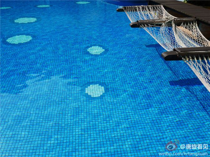 这里的泳池有两种,一种是半室内恒温游泳池,水温保持在29.8摄氏度;还有一种是室外普通游泳池,冷水。