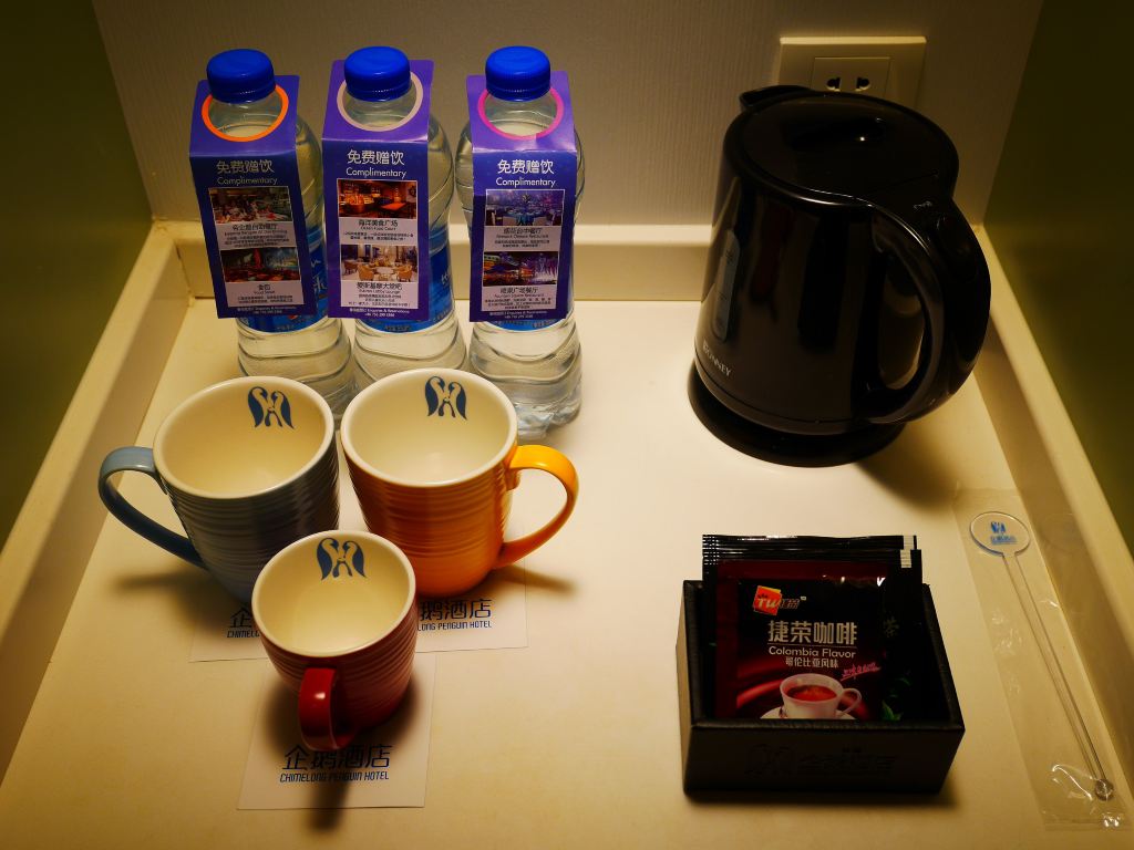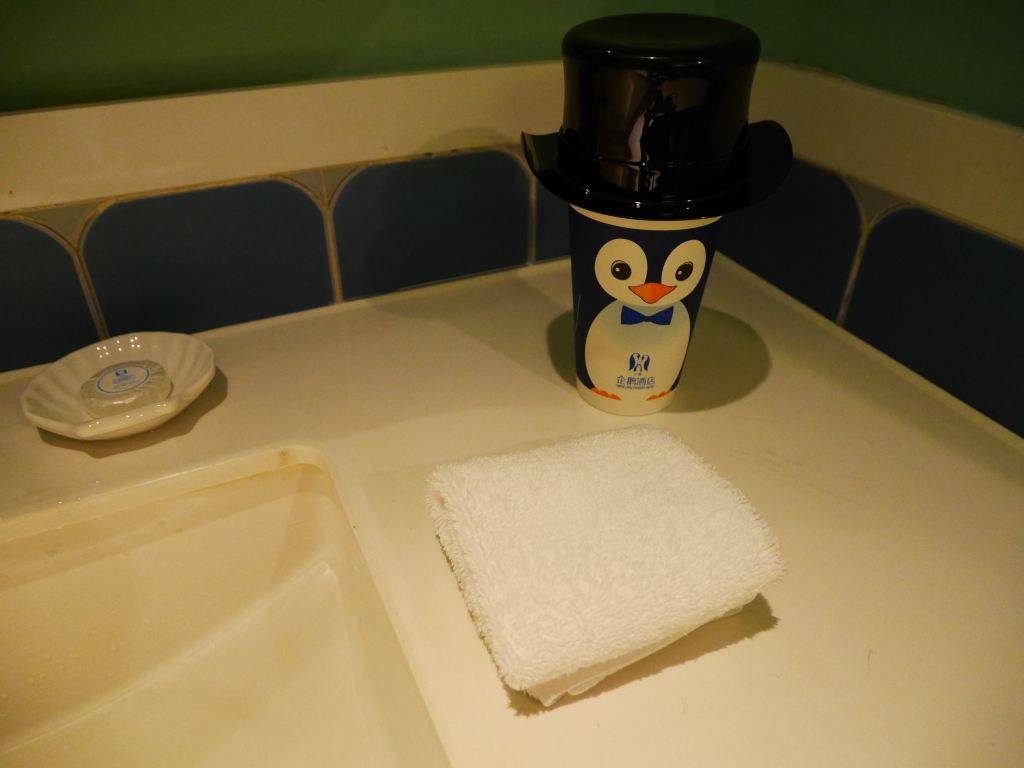 从布置陈设来看,企鹅酒店主打的是亲子系列。水有三瓶、杯子有三个、拖鞋也有三双~~~~~