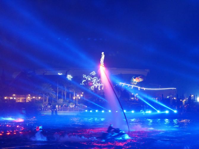 飞人表演在两个时间段会出现,一次是下午三点,一次是晚上八点。