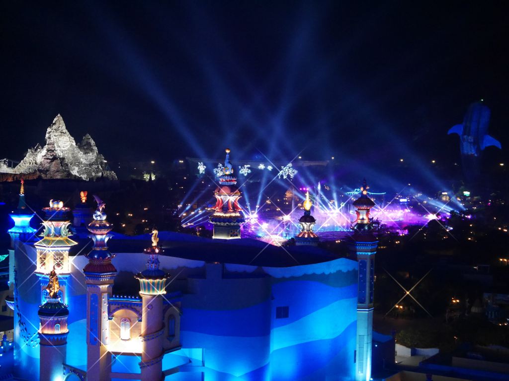 今天雨林餐厅里几乎都是媒体/达人,守着晚8点的灯光烟火真人秀~好期待~