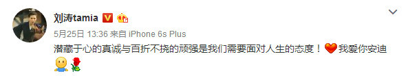 难怪刘涛本人也在微博上隔空表白:安迪,我爱你。