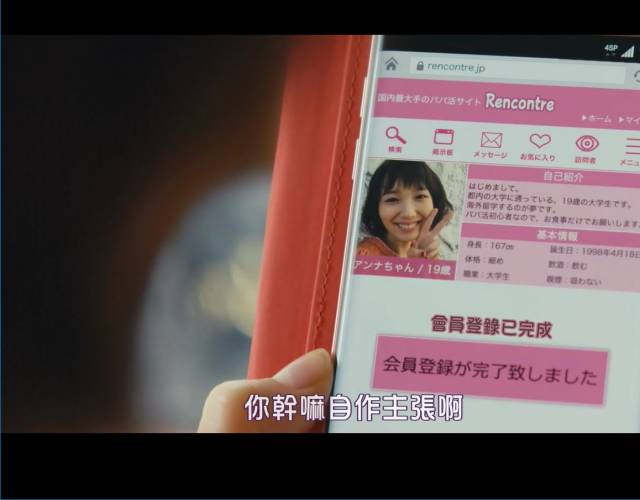 第一次约会是失败的。本来就是半推半就开始的杏里,看到满嘴食物的油腻大叔,立马全线崩溃,狼狈地逃出餐馆,放弃了约定的“生活费”。