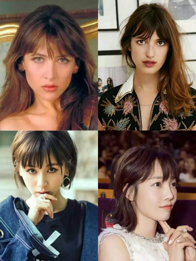 而法式刘海受欢迎不仅仅因为风情,更因为它有修饰脸型的作用能减龄,如果眉眼好看的话,还能使人们视线下移,凸显出下半脸。