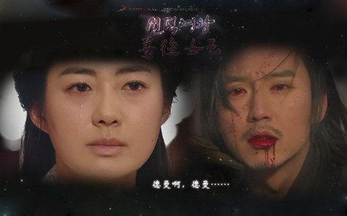 毗昙死在了女王面前,这对德曼是不能承受的打击,明明有多想去拉住他的手,多想听他说一句话,德曼都必须忍着,都不能动,只能让脸上的泪水不停地流啊流,因为他是神国的敌人,那短短几步的距离就象天涯海角隔着他们,直到他倒在自己的面前,这种煎熬太重太残忍了。长久以来的支柱和期盼倒下了,和毗昙共度余生的梦想最终只是梦想。德曼晕倒和死去的毗昙四目相对的时候,那种悲伤已是不能承受之重。