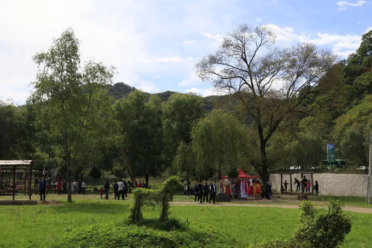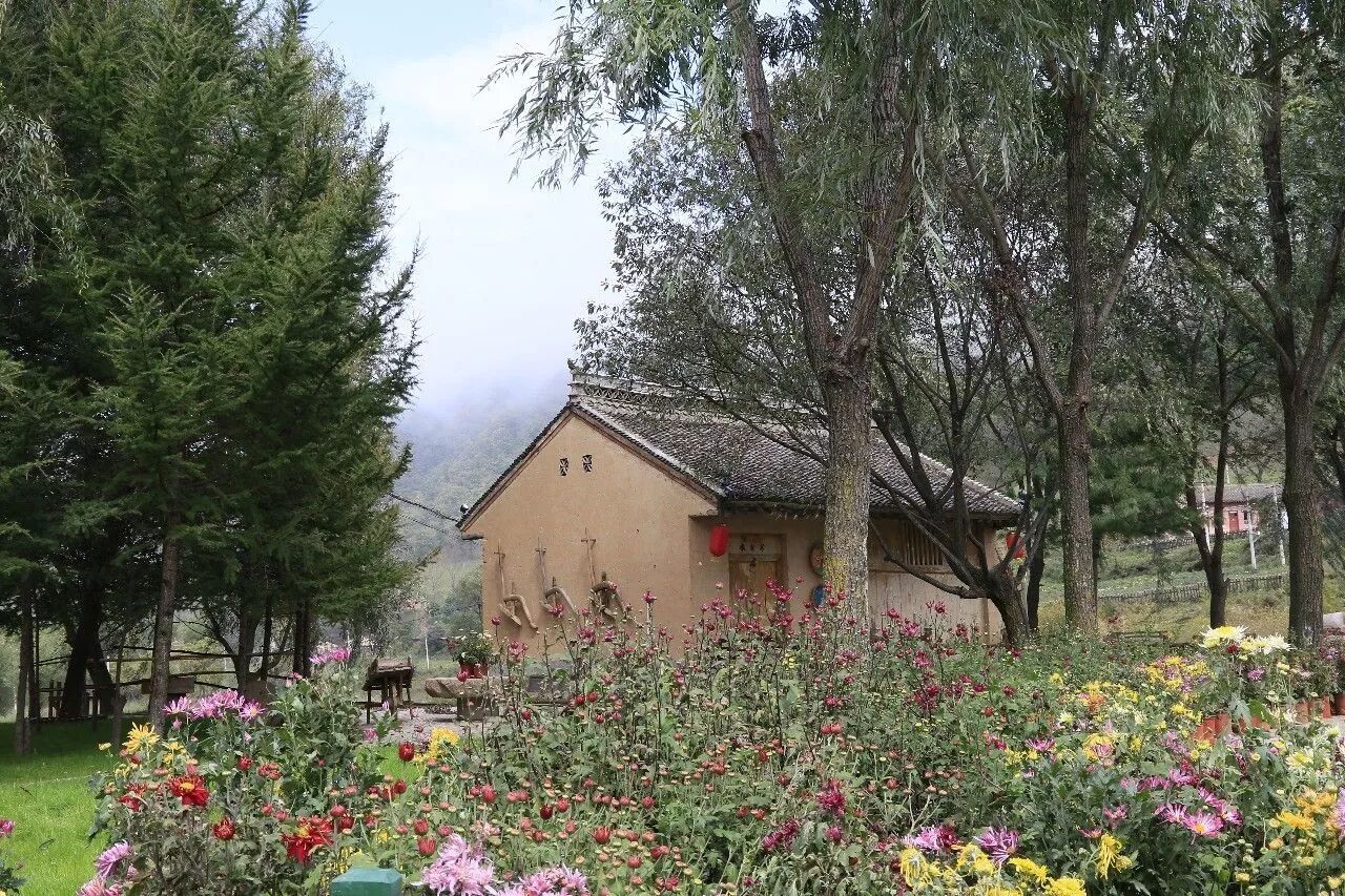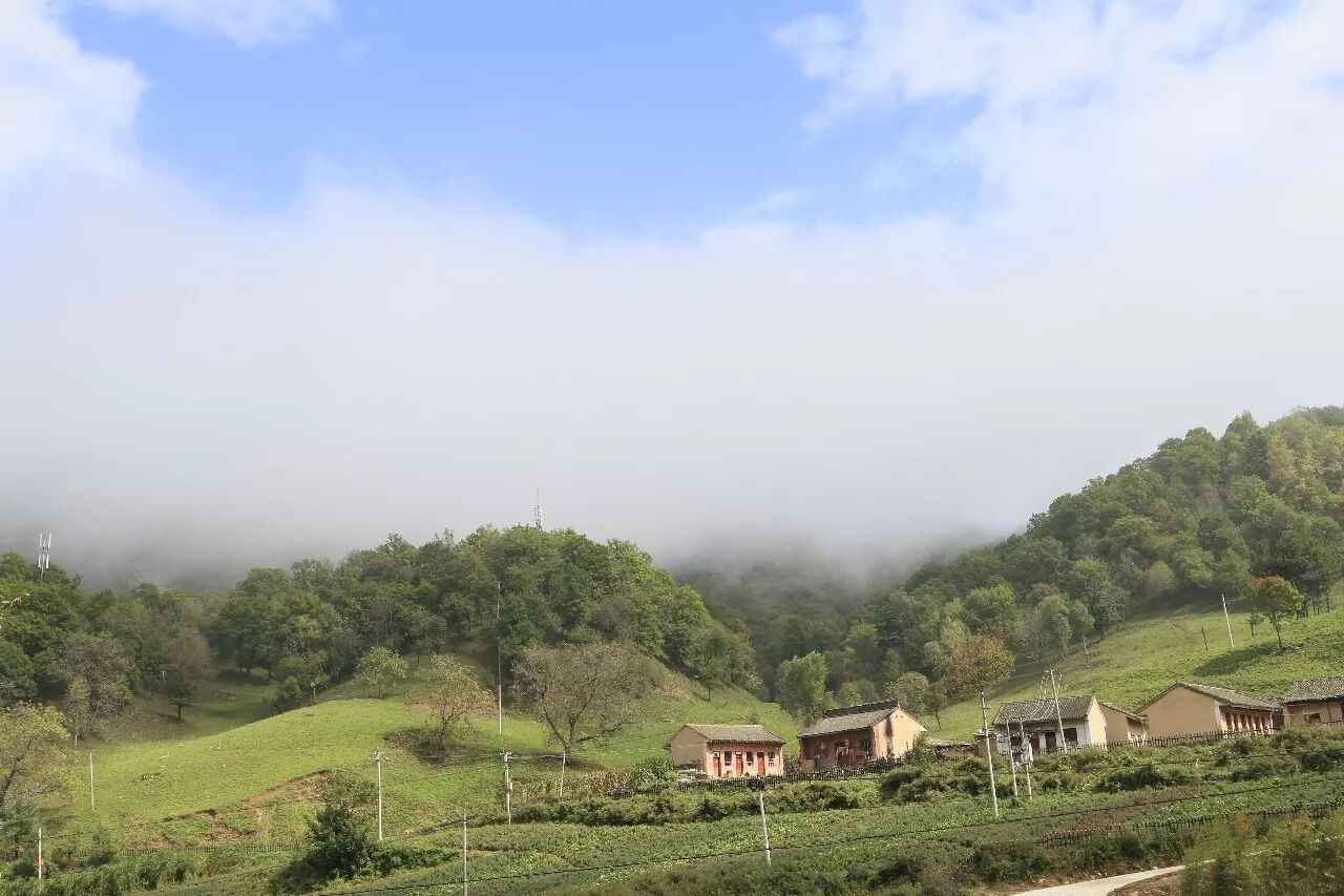 沿着山路盘旋而上,距离游客中心半小时左右车程,就是著名导演张艺谋拍摄电影的地方——秋菊山庄。白云浮动,蓝天乍现,云雾深处几许房屋,好似神仙居住的地方。