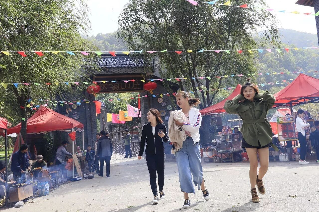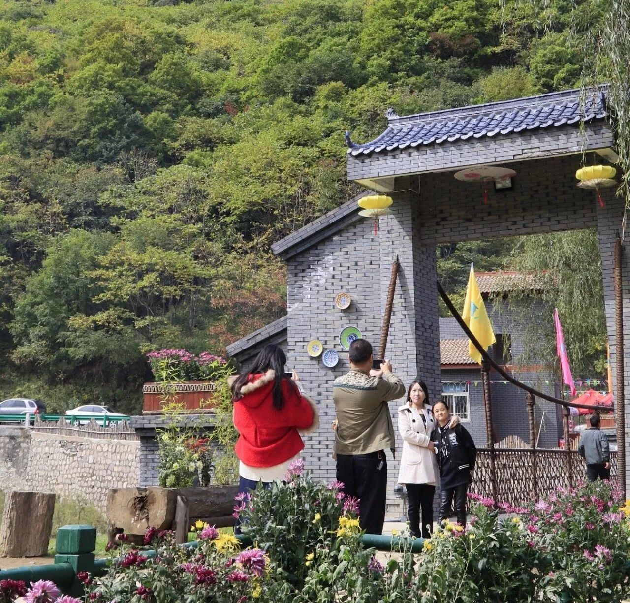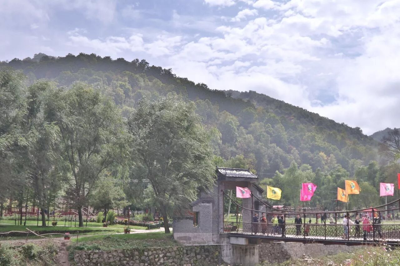 继而走进山庄,浓浓的烟火气息扑面而来,别致吊桥、潺潺流水、菊花盛开,在阳光照耀下熠熠生辉。
