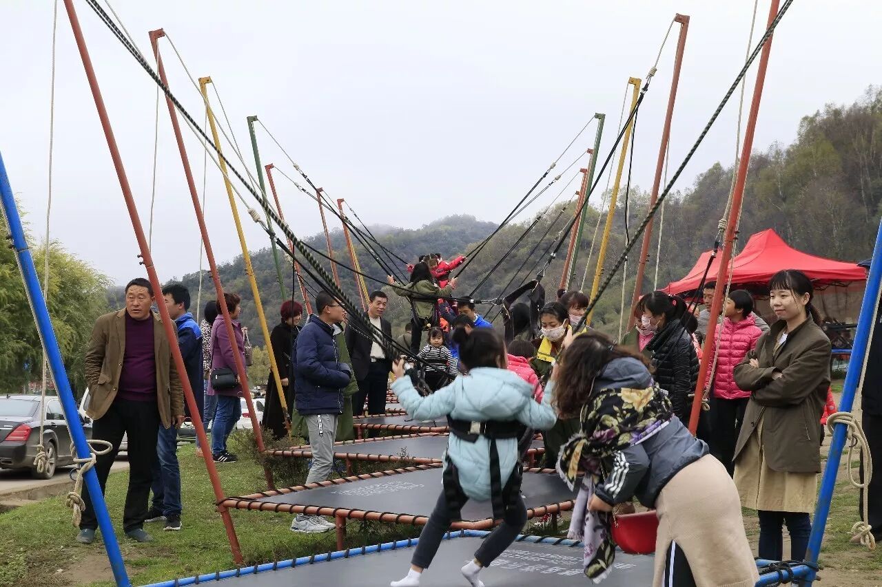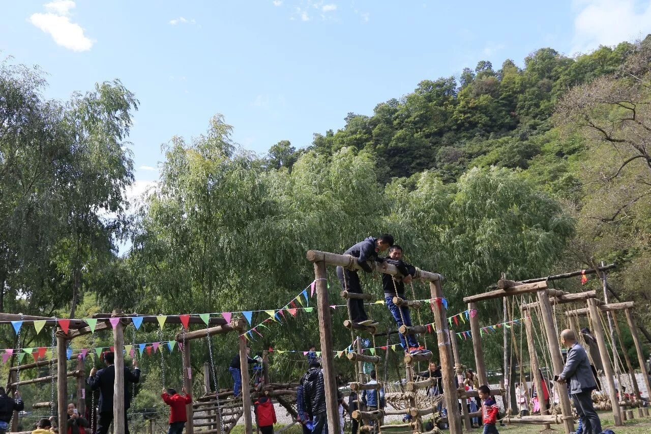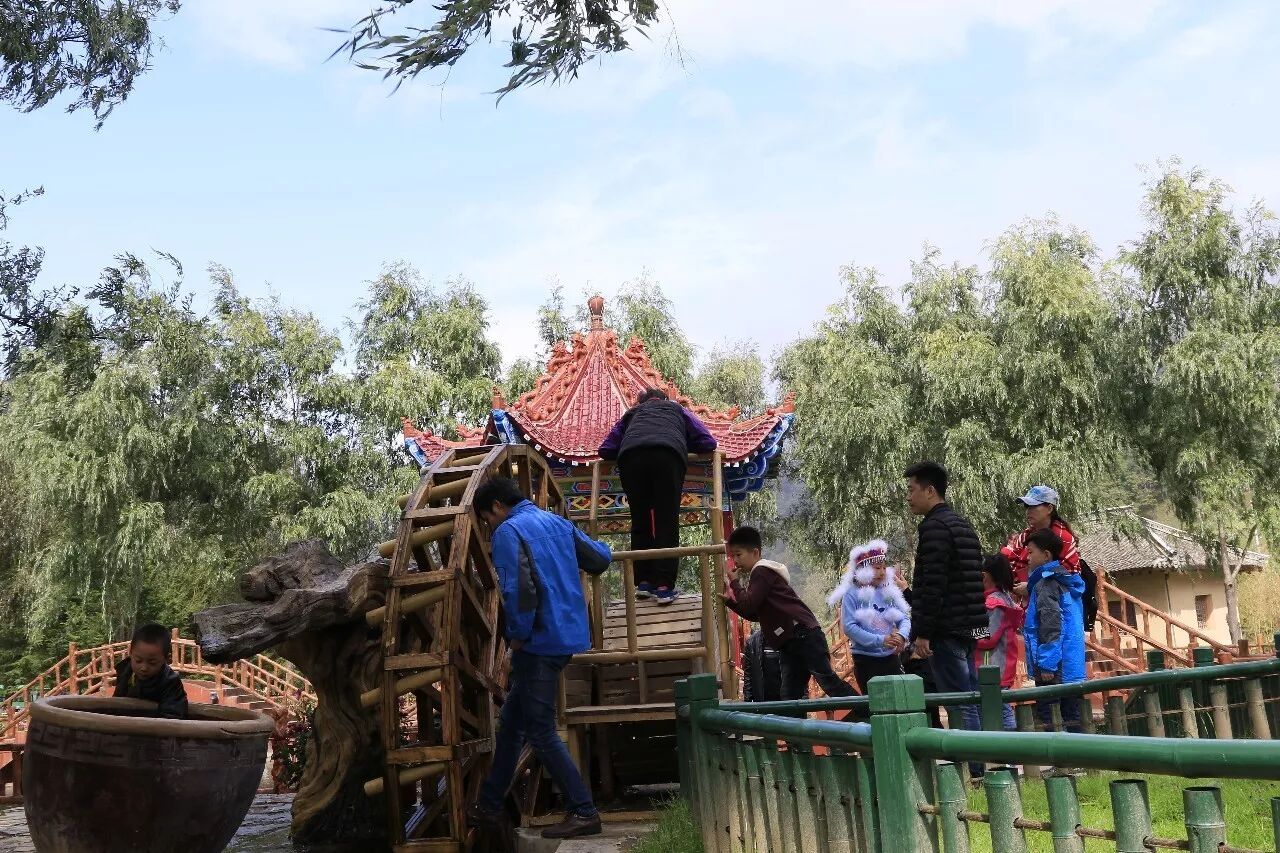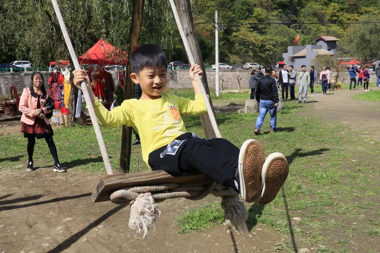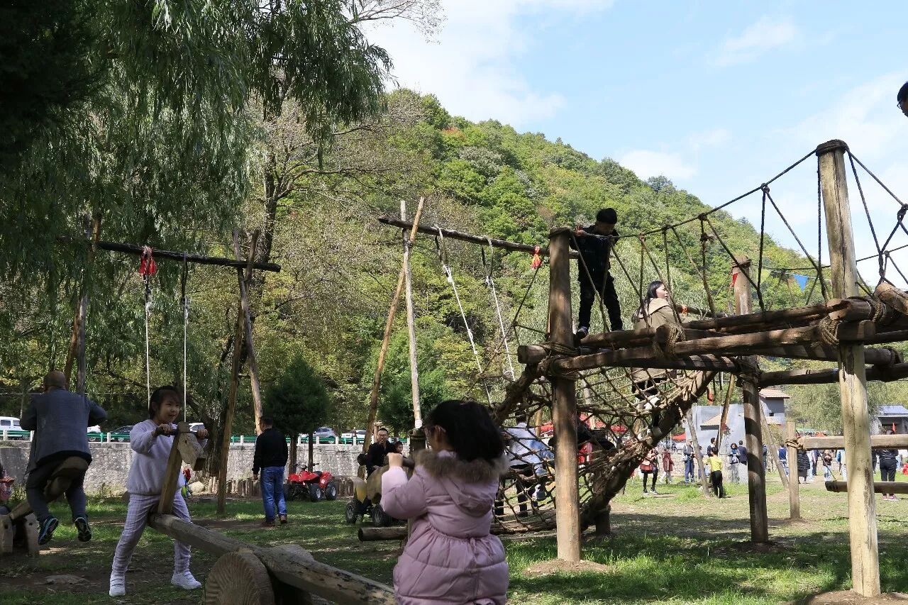 山庄的游乐场里三五成群的游客随处可见,跷跷板、秋千等娱乐项目倍受小朋友喜爱。