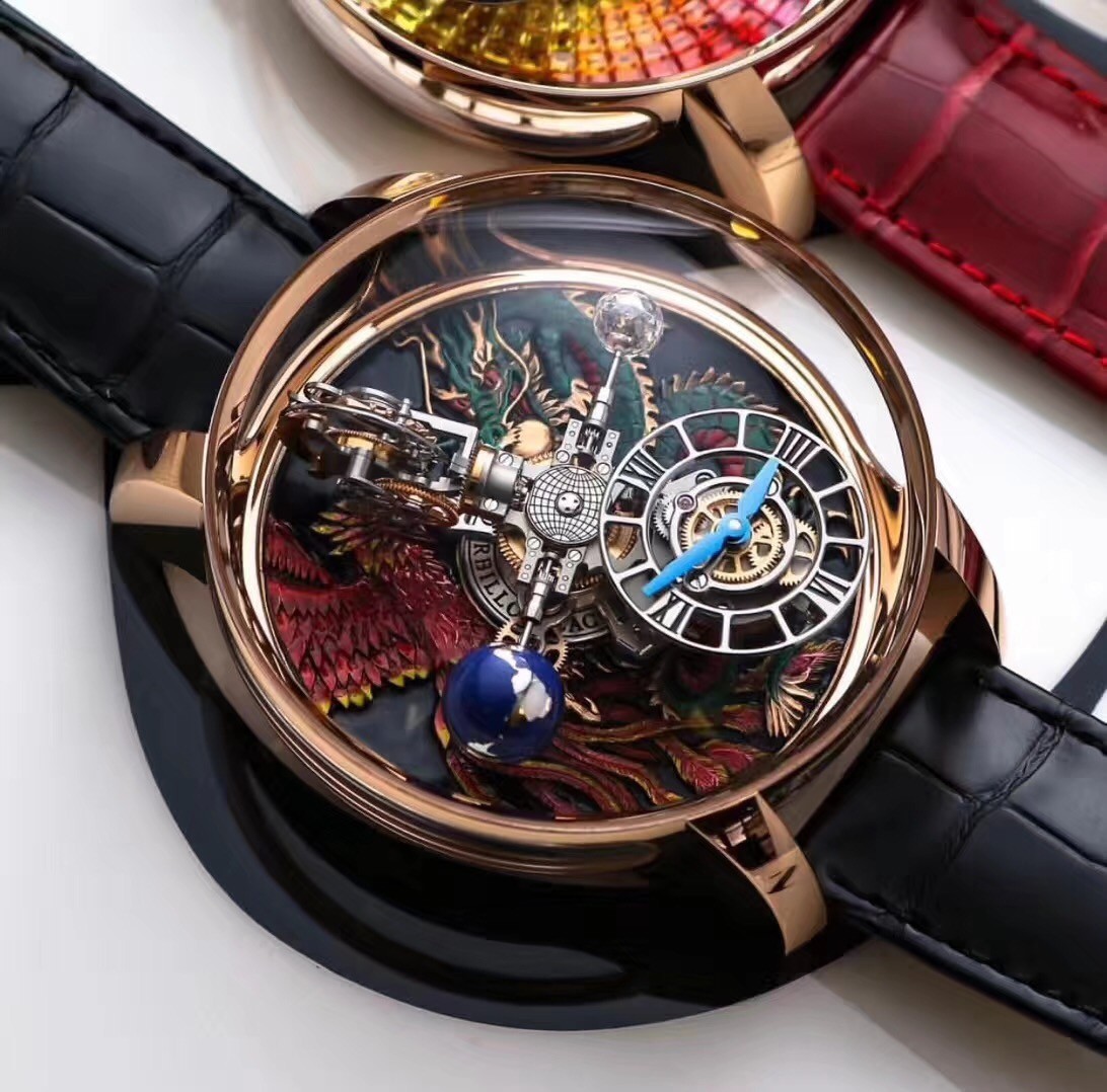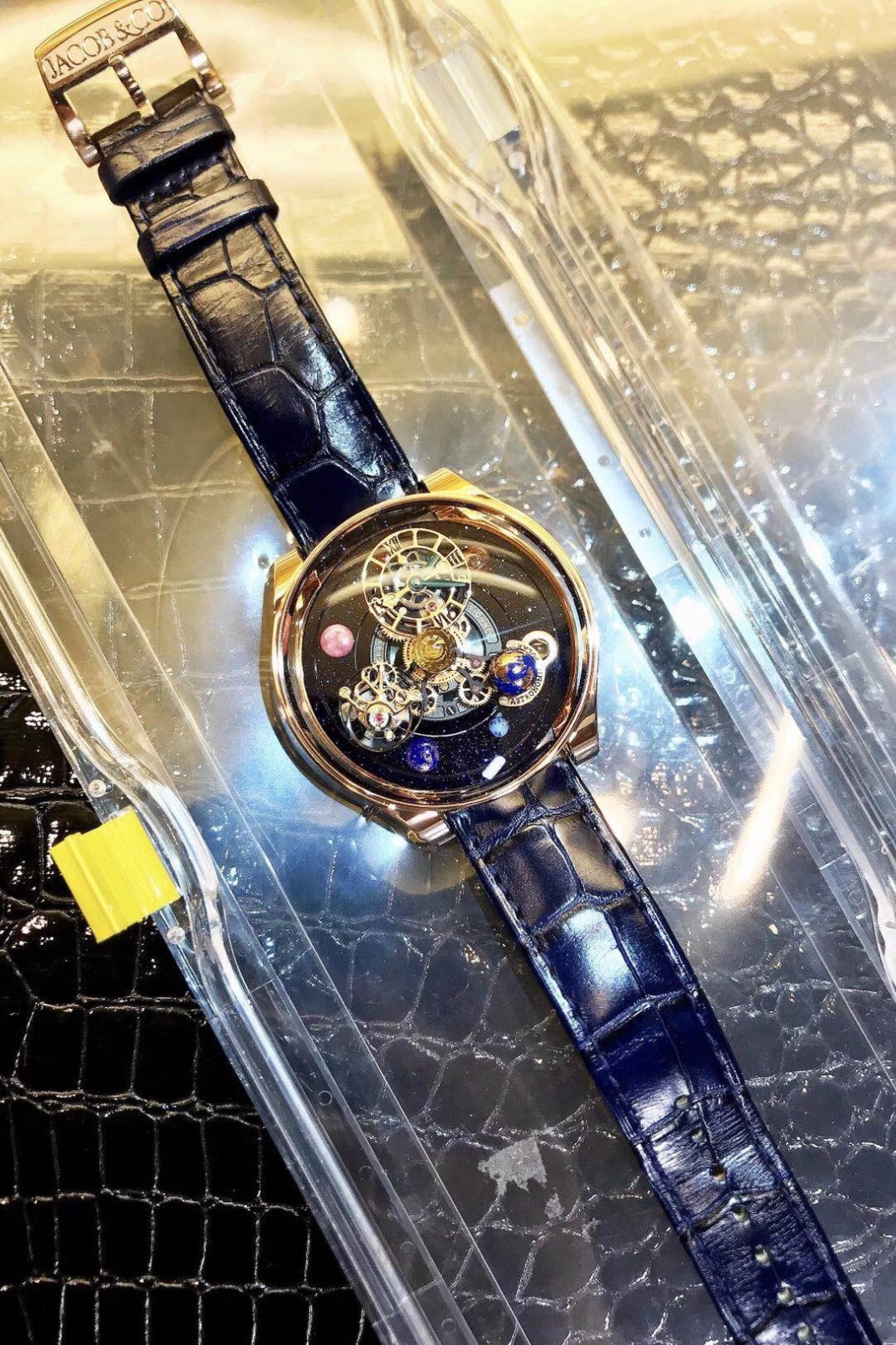 飞轮家族是Jacob&Co自己创造天文并发症的独特之举。通常情况下,它们并不是对实际天文周期的高度精确的表示(现在,也许是江诗丹顿的Celestia)。相反,它们是手腕上的一种动态雕塑,基于四臂运载系统,支持各种附加的显示或天体物体的表征。