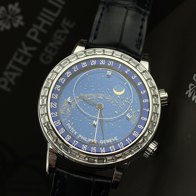 百达翡丽推出一款值得收藏的超级复杂功能计时系列6104G-001,不管你睡在哪里,愿你有一片属于自己的星星百达翡丽6104G显示日内瓦的星空。