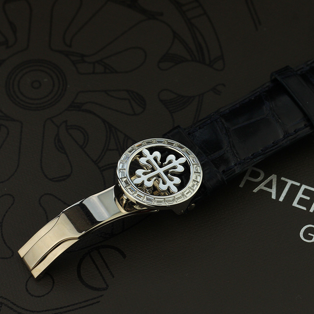 表扣材质:18k白金-镶嵌22颗长阶梯形钻石(~1.13 克拉)