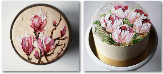 烘焙严格来讲,也算艺术的一种,都需要创作、灵感和审美意识,而蛋糕也可以当作画布,涂抹些“颜料”(比如奶油霜),使用并调整适用于蛋糕的油画技法,对蛋糕进行装饰,油画蛋糕应运而生。
