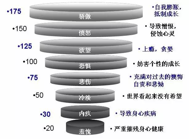 美国著名心理学家大卫·霍金斯花了30多年的时间,研究证实了人们真的有各个不同的级别。