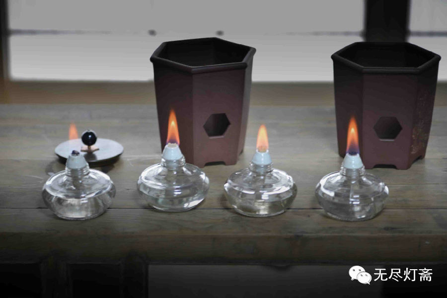 点燃酒精灯,在最接近条件下准备开始第一步,挑选三支火苗差不多大小的酒精灯,放入同款灯斋的紫砂炉内。