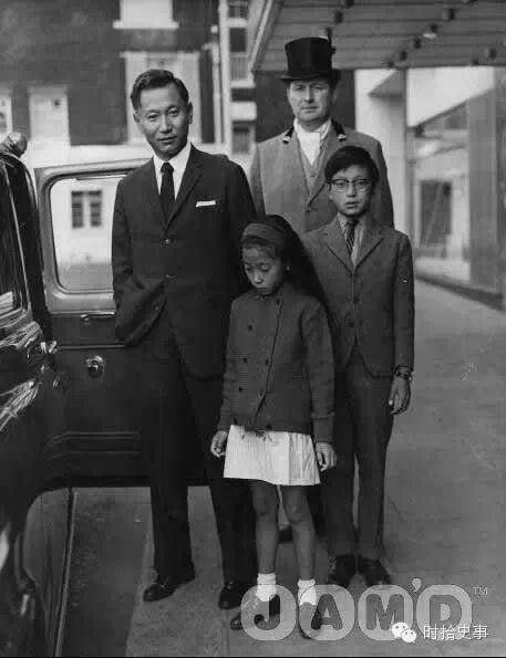 1964年8月锡金末代国王巴登郎加访问英国伦敦,照片上的两个孩子都是他前任西藏太太所生,一个是旺秋王子,一个是央珍公主。
