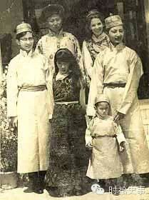 锡金国王和美国王后,前面是锡金国王前妻生下的孩子,最小的那个是白人皇后生下的。