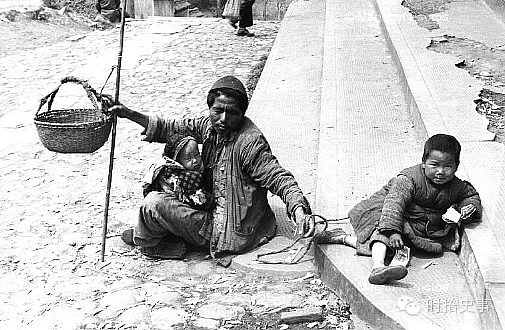 1949年,杭州,国民党统治的最后混乱的日子里, 小孩用绳子牵着自己的盲人父亲在街上乞讨