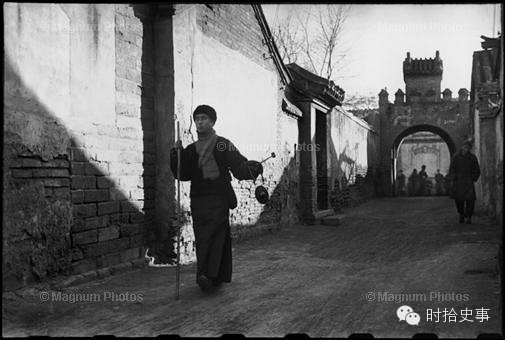 1948年12月,北平,街上敲打手锣招待生意的盲人算命先生