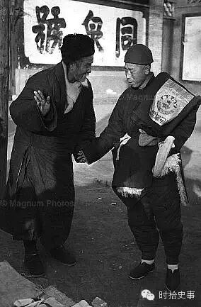 1948年12月,北平,相互问候的商人和顾客。 尽管城市已经被包围,但市民都保持了一个平静的心态