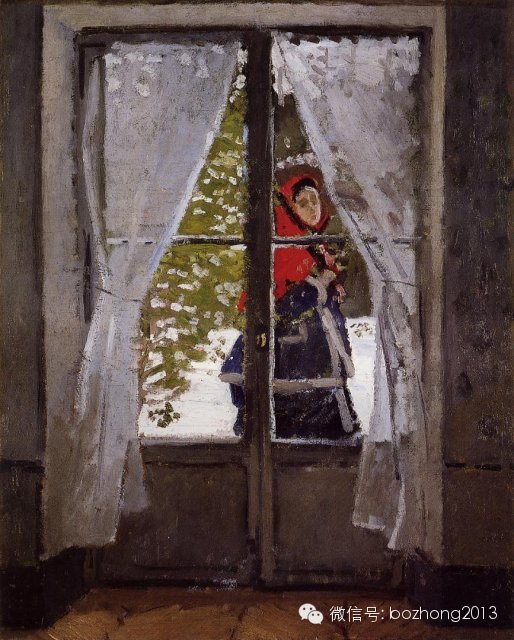 画中,带着红围巾的卡米尔,从门外匆匆经过,怕是赶着操持永远也忙不完的家务吧,而门内专注作画的莫奈让她忍不住驻足瞥一眼,分明是怜爱的眼神,然而岁月的艰难也铭刻上些许疲惫。也许此时的莫奈也刚好抬起头,彼此目光交汇,他被这一瞥深深牵引,然而或许是迟迟没有找到让这种瞬间定格的方式,画作就这样一直搁着。