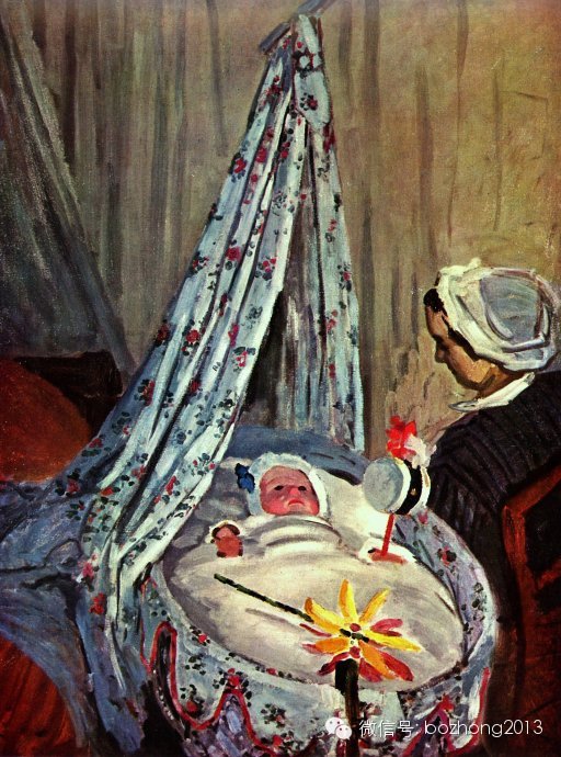 现实总爱跟人开玩笑,《绿衣女子》的无心插柳却成荫了,而莫奈大受鼓舞、费尽心力创作的大型油画《花园里的女子》(2.55×2.05米)却没有被官方沙龙接纳,经济窘迫事业挫折的双重夹击,莫奈的心情可想而知,不过我们善解人意的卡米尔却并没有因此而离弃莫奈,相反在这些艰难的日子,总是默默地在身旁支持他,充当他的模特。甚至还在莫奈连最起码的名分都没法给她的情况下,为他生孩子。1867年,莫奈大儿子出生了。