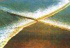 (又名十字潮)在海宁市丁桥镇,距杭州湾55千米有一个叫大缺口的地方是观看十字交叉潮的绝佳地点。由于长期的泥沙淤积,在江中形成一个沙洲,将从杭州湾传来的潮波分成两股,即东潮和南潮,两股潮头在绕过沙洲后,就像两兄弟一样交叉相抱,形成变化多端、异常壮观的交叉潮,呈现出“海面雷霆聚,江心瀑布横”的壮观景象。两股潮在相碰的瞬间,激起一股水柱,高达数丈,浪花飞溅,惊心动魄。待到水柱落回江面,两股潮头已经呈十字形展现于江面上,并迅速向西奔驰。同时交叉点像雪崩似的迅速朝北转移,撞在顺直的海塘上,激起一团巨大的水花,跌落在塘顶上。