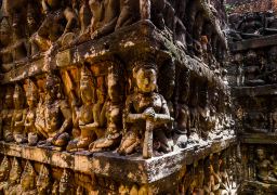 战象平台是国王阅兵的平台,正对着通往胜利之门的大道,从胜利门凯旋而归的将士们就在这里接受国王的检阅。它和癞王台、巴方寺构成一个整体建筑,12世纪末由阇耶跋摩七世建造。它的外墙上有许多精美的雕刻,值得仔细观赏。