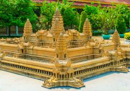 金边皇宫是柬埔寨国王的宫殿,由一组金色屋顶、黄墙环绕的建筑组成,造型精美,金碧辉煌。包括查雅殿、金殿、银殿、舞乐殿、宝物殿等20多座大小宫殿,宫殿均有尖塔,代表繁荣;殿身以黄、白两色为主,黄色代表佛教,白色代表婆罗门教。建筑回廊上是仿吴哥寺的华丽浮雕壁画,描绘了历代王朝功绩和宗教故事。