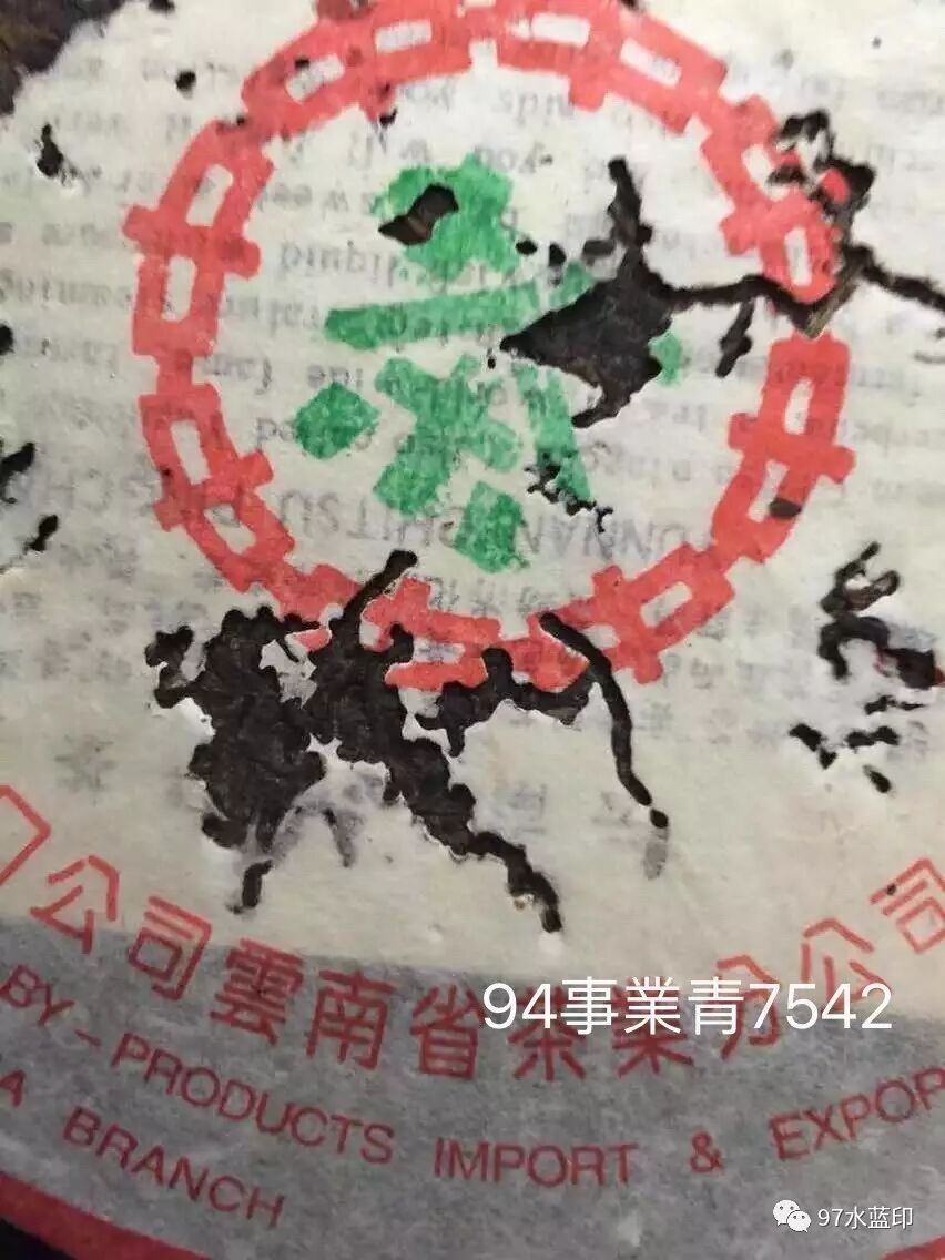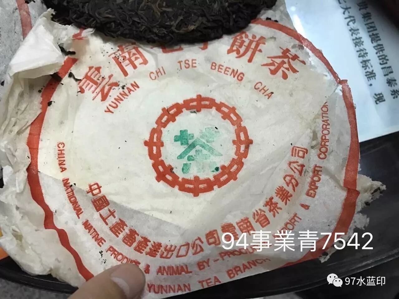 继八八青饼之后的勐海茶厂7542,市场较为知名的就是93青,跟94青。而本文所说的94青市场还有另一个绰号就是“94事業青7542”,是1994年勐海茶厂生产的唛号7542,版面印刷上的错版暗记。由(中国土产畜产进出口公司云南省茶叶分公司)中的茶“叶”的叶字错版为事业的“業”因此市场命名为94事業青。https://mmbiz.qpic.cn/mmbiz_jpg/RF7qgx3AIkq8HVF9SzdMe57Hwia6llBBg2ic5dw0h3YYgqFQx8ibjImoPqAicJLu6xppia6J4VmQ1GKHMFCzZDKF1OA/640?wx_fmt=jpeg&tp=webp&wxfrom=5&wx_lazy=1