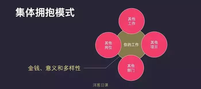 所谓的集体拥抱模式,就是你现在的工作岗位有很多机会可以和不同类型的岗位协作。